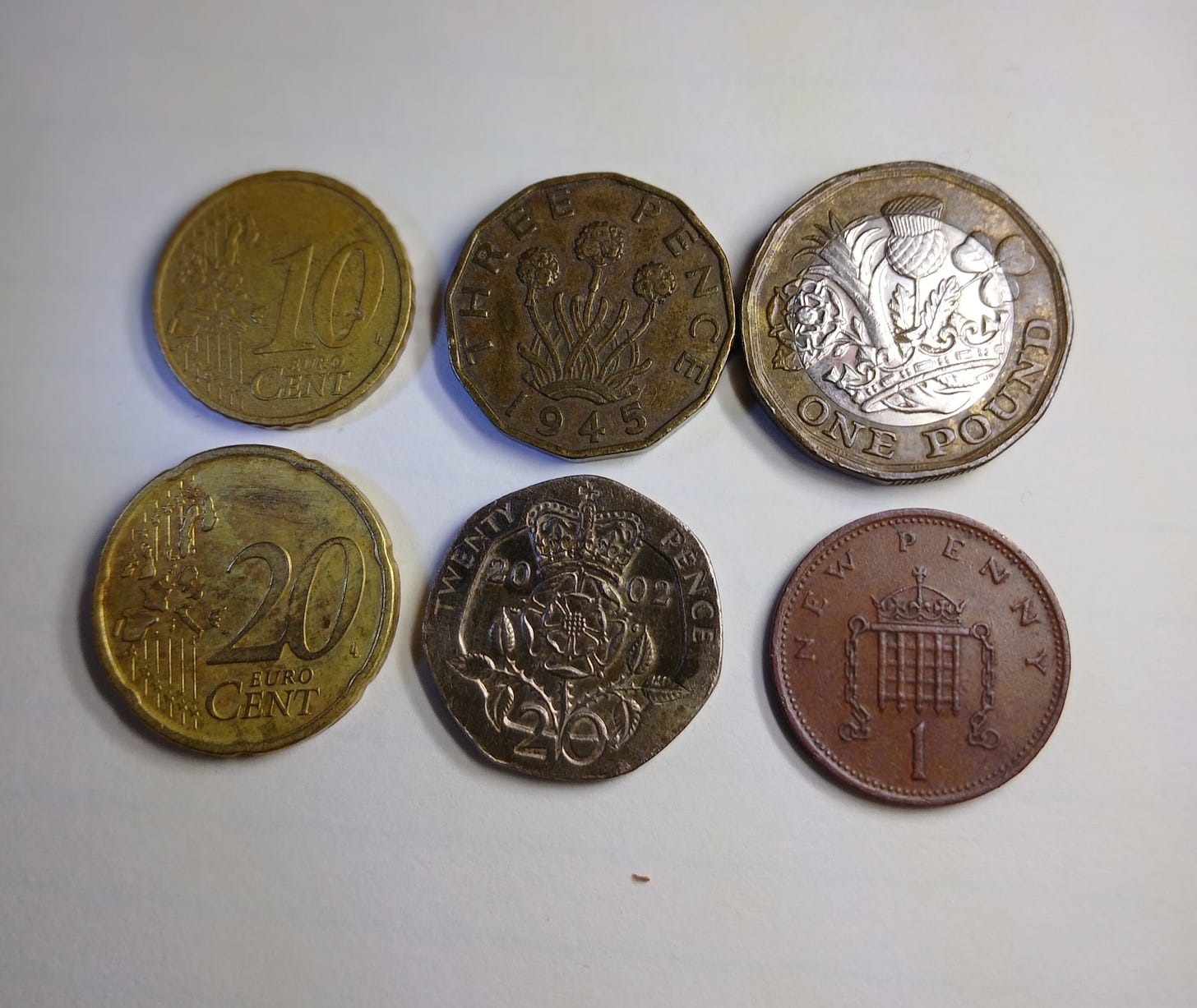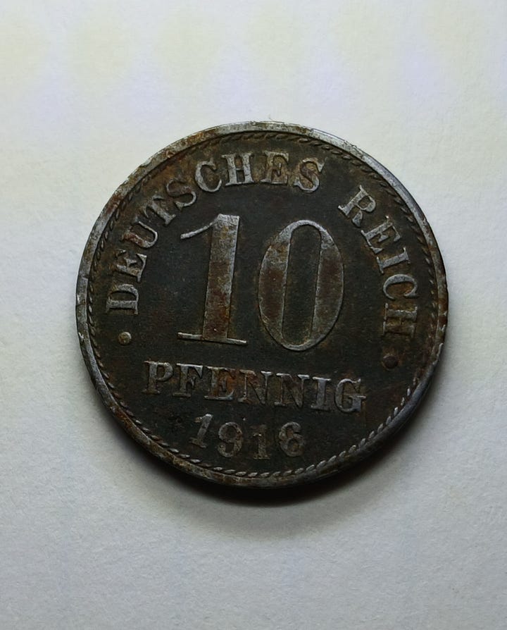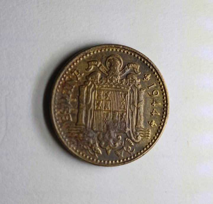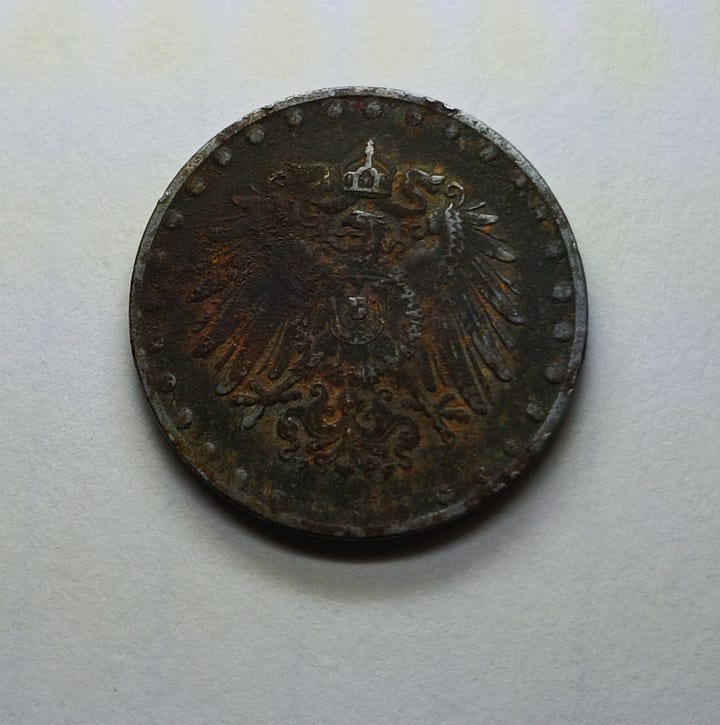 Today’s post is about my foreign coin finds. Of course, I’ve found quite a few Canadian coins, which I’m not going to include in this post except for one particularly interesting example. I’ll save that for last. Like many US coins that aren’t made of silver, I never know what condition foreign coins will be in when I dig them up. In some cases, I’ll include a photo of what the coin would have look like if it were in better shape.