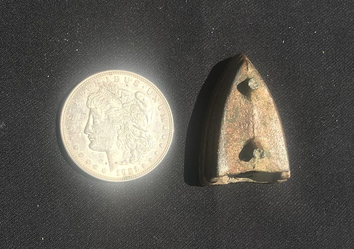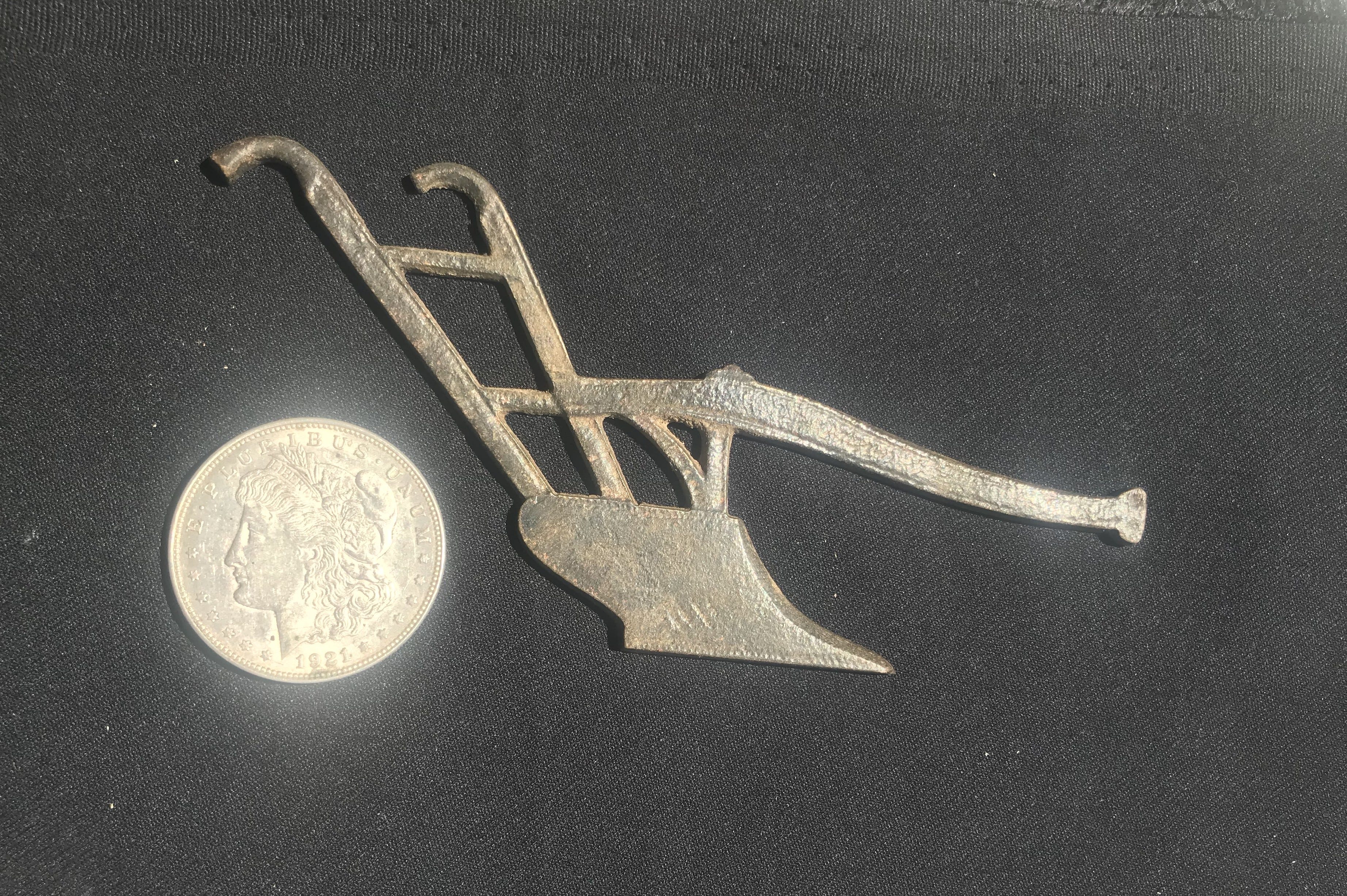 Most of the artifacts I find, I recognize right away and know what they are or how they were used. If I’m uncertain, a quick internet search usually clears things up. But every now and then, I come across something that baffles me. Today’s post is about a few of those puzzling finds. For scale, I’m using a silver dollar—though not one I found metal detecting. In fact, finding a real one is probably at the very top of my bucket list.
